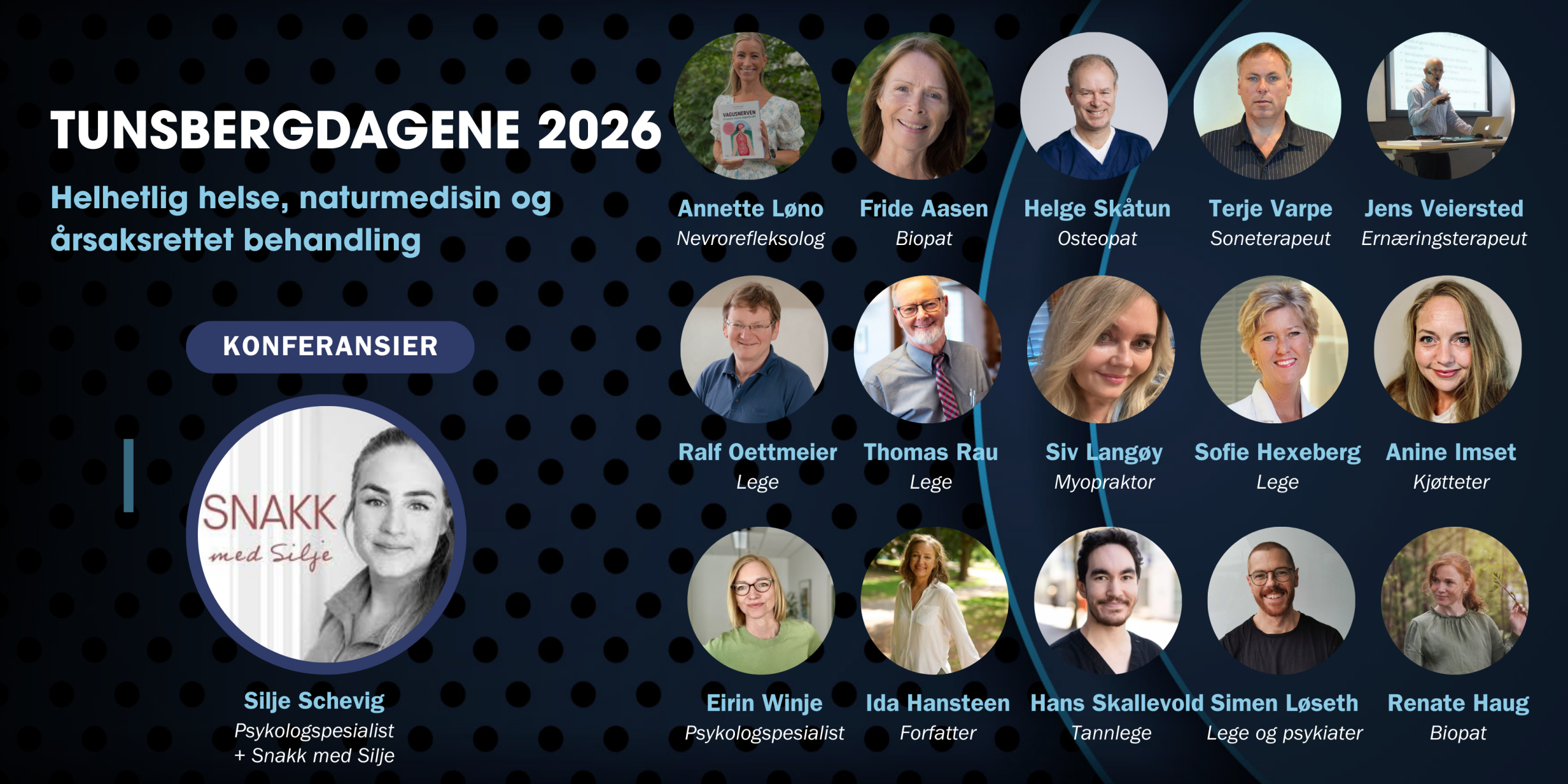 Tunsbergdagene er vår største faglige møteplass for deg som vil forstå helse litt bedre – og ikke minst kunne ta i bruk den nye kunnskapen. Du kan delta fysisk i Drammen (Hotel River Station, 1 minutt fra togstasjonen), eller følge alt live på Nett-TV – med opptak i etterkant.
